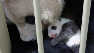 赤ちゃんパンダ体重2キロ超に…和歌山・白浜 和歌山県白浜町のテーマパーク「アドベンチャーワールド」で、昨年11月に生まれたジャイアントパンダの赤ちゃんの体重は16日、生まれた時の約15倍となる2335グラム、全長は54センチまでに成長。両目が開いて少しずつ見えるようになってきたのか、木箱の中で元気に動き回る。赤ちゃんの毛は、母親の良浜(ラウヒン)と比べて真っ白で、一部がピンク色になっている。それは、良浜がなめており、その際に付いた唾液の成分による変化で、親子の愛情の証しとも言える=アドベンチャーワールド提供 2021年1月16日公開 赤ちゃんパンダの両目ぱっちり…和歌山・白浜 赤ちゃんパンダ誕生…和歌山・白浜 番組、CM、イベントで使う 動画の利用 スクープ、ユニーク映像募集中 動画の投稿 twitter facebook line mail